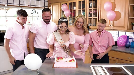 Rough birthday gangbang for a hot brunette - Madison Wilde