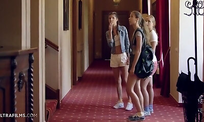 Three Sexy Gorgeous MILFs Involve a Cute Sweet Brunette Teen In Their Gonzo Lesbian Perversions