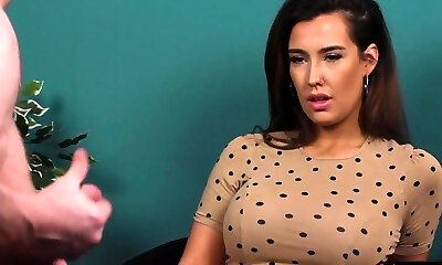 Playful lovely auburn cutie Hannah Hays bows to suck succulent spunk-pump