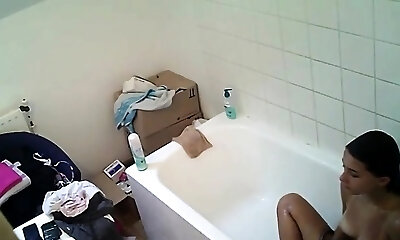 Superbe adolescent fille Japonaise prend un bain et se fait prendre sur venus