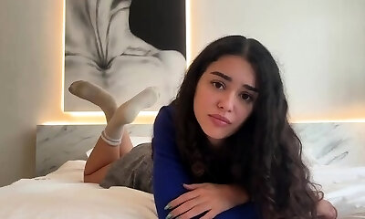une adolescente russe aux cheveux noirs et passionés tentée et anale sur le lit après une leçon de guitare