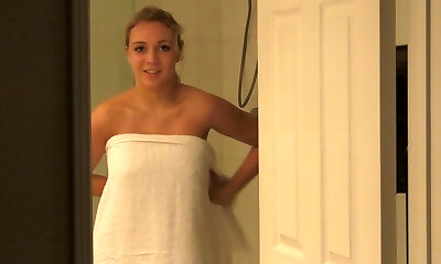 senorita blonde platine provocante avec un corps appétissant prend une salle de bain