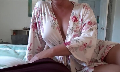 belle-mère bbw aux seins massifs donne une branlette à son beau-fils