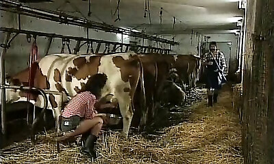 Brunette Lady Farmer Furry Pussy Barn Fucked