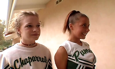 Cheerleader in panties licking balls in ffm porn shoot