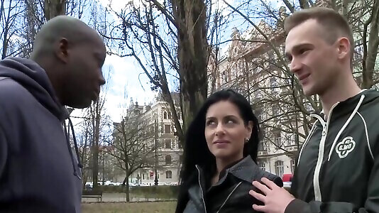 Tits licking leads to FFM threesome with busty Joslyn and Charly
