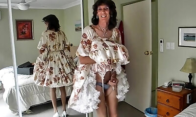 Crossdresser michelle frolicking in floral frock