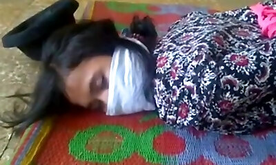 Three girls roped and cleave gagged