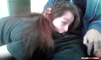 Nerdy latina gagging on her stepbrother's meatpipe