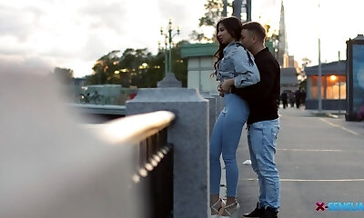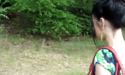 Lovely teen Naomi Bennet is eager for dirty threesome outdoor sex