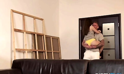 Romanian lady with zero tits Candice Demellza is pulverized hard by one boy in glasses