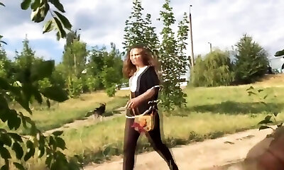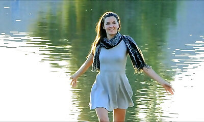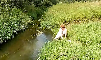 Sweetie is in the nature getting naked and pleasing her horny cunny