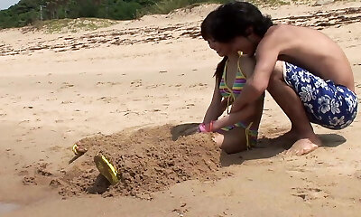 couple ludique déshabiller et pulvériser sur la plage hardcore