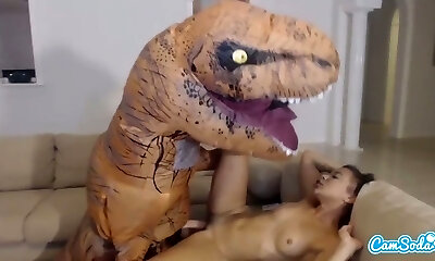 Dude in funny costume humps stepmom and step daughter early in the morning