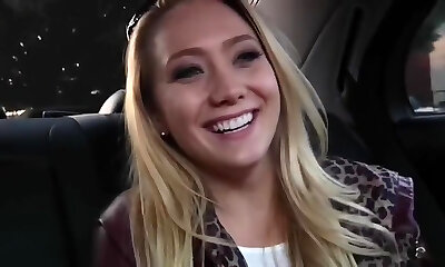 Busty blonde teen Roxy Lovette takes turns riding three cocks