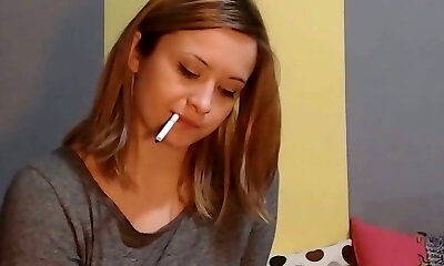 This downright legal camgirl enjoys to smoke while masturbating and she's cute