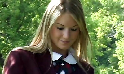 Delectable school girl poses seductively for an softcore outdoors solo shoot
